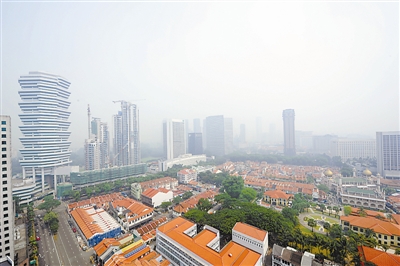 烟雾笼罩着新加坡。 邓智炜 摄 (新华社发)