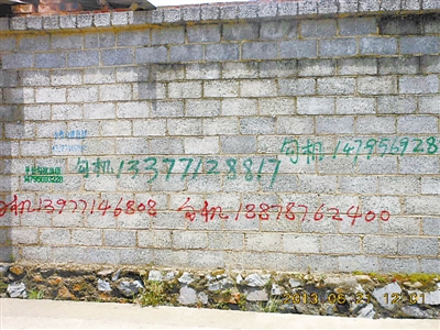 上林县的砖墙上 , 出售淘金的设备信息随处可见 。