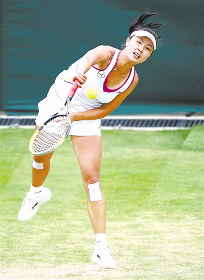 当地时间6月27日,中国选手彭帅在伦敦举行的2013温布尔登网球公开赛女子单打第二轮比赛中,以0比2不敌新西兰选手埃拉科维奇,无缘第三轮。新华社发