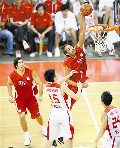本场比赛作为慈善赛事,赛事的结果并不太重要。不但孙悦和王仕鹏身披美国明星队战袍出战,而且在比赛第三节,来自希望小学的孩子们也代表两队上场比赛。
