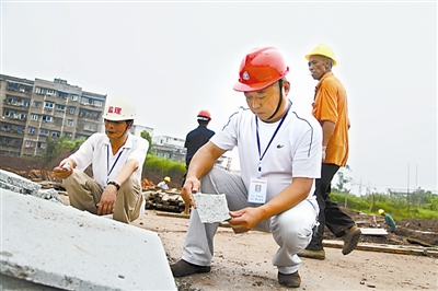 7月2日,四川省泸州市龙马潭区石洞镇郎酒项目一期定向限价房修建现场,3名群众监理在对工程质量进行监督,确保自己近日和其他征地搬迁的300余户群众住上放心的“安置房”。