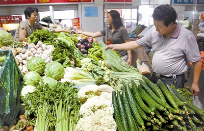 7月2日,消费者在石家庄市裕华区塔北路菜市场选购蔬菜。