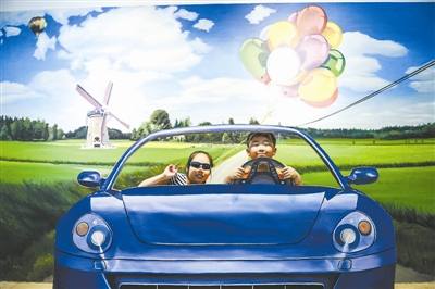 7月2日,孩子们与3D立体画合影。