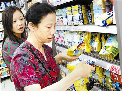 7月4日,顾客在上海市的一家大型超市内选购进口奶粉。
