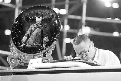 7月1日,12位山西传统工艺美术名家在山西文博会上现场表演制作精美绝伦的漆画、瓷器,吸引众多市民驻足观看。