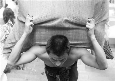 山城重庆,到处都是梯坎。冉光辉背着货物,从高处的大正商场走几百米的阶梯到低处的货运中心,又从货运中心背货到高处的商场。100多公斤的货物扛在背上,他沉重地喘息着,汗滴不断地沁出来,满身都是。