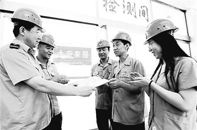 7月3日,对太原铁路局湖东电力机务段湖东检修车间工人韩喜清(右二)来说是个双喜临门的好日子。车间党总支书记李真给来送来了机务段“专业技术带头人”荣誉证书,奖励他4000元;同时,以他的名字命名的“喜青电子攻关组”被评为2012年度太原铁路局党内优质品牌。2012年,在无资料无设备的情况下,凭借着不服输的性格和过硬的业务技术,韩喜清仔细研究,攻克了模块修复的难题,成为机务段第一个首次完成了模块修复的人,打破了“和谐”型电力机车电子配件不可修复的神话。一年多时间共修复“和谐“型机车配件181多块,节约资金530多万。冯原平 于剑飞 摄
