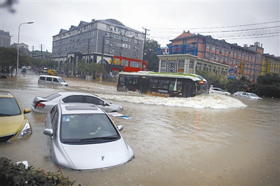 7月7日,武汉,武昌虎泉街杨家湾发生积水。武汉市5日至7日遭遇今年最强持续降雨过程,中心城区累计降雨量超过1.6亿立方米,降雨量达50年一遇。CFP供图