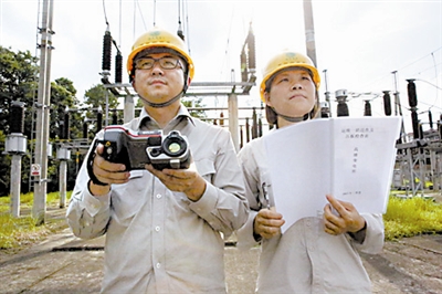 7月3日,浙江永康市供电局变电运检中心变电运检一班员工对110千伏高塘变电所电气设备进行红外线测温。该局努力确保永康电网“迎峰度夏”期间安全运行。陈方正 摄