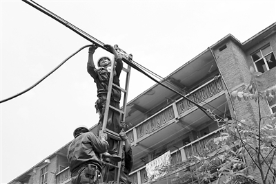 7月3日,新乡供电车间党员突击队员冒着酷暑对机务段家属楼用电线路进行升级改造。随着夏季用电高峰的到来,电力线路超负荷烧损电线路现象凸现,极易造成家属区电压过低或停电现象。新乡供电段结合安全大检查活动,对辖区内居民用电进行拉网式排查整治,并成立党员电力应急突击队,加大设备巡视检查力度,发现问题及时处理,以满足职工家属区日益增长的用电负荷需求。 高国桥 摄