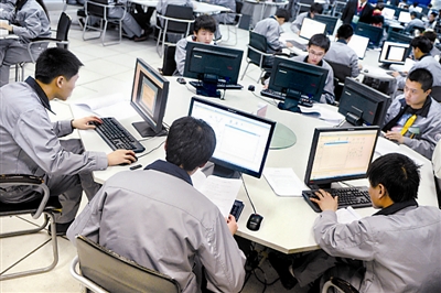 在长春举行的2013年吉林省高职院校技能大赛上,学生在进行计算机网络组建及安全应用比赛(2013年4月27日摄)。新华社记者 林宏 摄