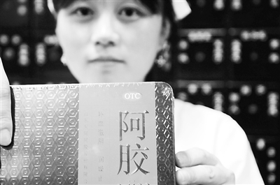 图为山东青岛一药店员工在展示中药材阿胶 俞方平/CFP