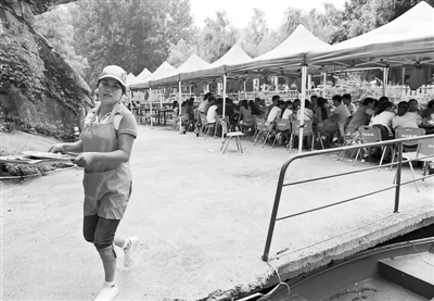 7月13日,入伏第一天,在北京怀柔一旅游景点,游客正享受山林间的清新惬意。随着盛夏来临,都市人利用周末驾车到郊外消暑休闲逐渐火爆起来,再加上暑期学生放假,有的景区在周末人满为患。据北京怀柔一度假山庄经理介绍,他们山庄标准间的价格在平时打八折,但在周末是全价,这还得提前一两天预订。和往年不同,以前以会议为主的公务休闲游明显减少,以家庭为单位的旅游人数明显增长,为此,他们通过整合旅游资源,调整饭菜品类,细化旅游项目等方式寻求新的利润增长点。