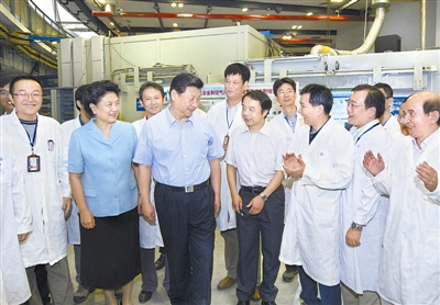 北京同步辐射装置面向全社会开放,是在原子、分子水平上认识物质结构和功能的重要科学装置,也是我国科学研究的公共实验平台。9时30分许,习近平来到实验区12号厅,了解利用这一装置开展科研的情况。科研人员介绍,同步辐射装置每年为来自科研院所、高等学校和企业100多个单位的500多个课题提供服务,取得了一系列基础研究成果和重要应用研究成果。习近平对他们取得的成绩给予肯定。他强调,加强科研平台建设,充分发挥科研平台作用,是提高科技投入效率的一个重要问题,要在深化科技体制改革中认真研究。