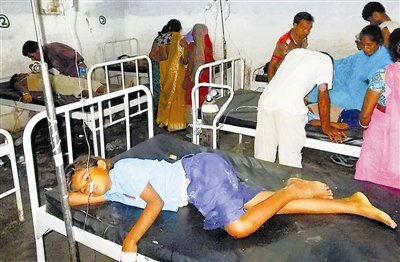 印度比哈尔邦官员7月17日表示,此前一天发生在该邦萨兰地区一所公立小学的集体食物中毒事件已经导致20人死亡,30名儿童在巴特那的医院接受治疗。当地政府已对这起事件展开调查。比哈尔邦首席部长尼迪什此前宣布,对每名死者赔偿约3000美元。图为在医院接受治疗的中毒儿童。吉平 供图