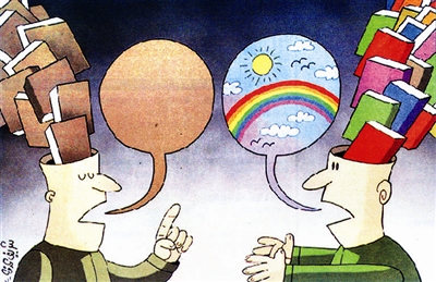 人们读书如同饮食,各有所爱,口味迵异,这幅画的主人公道出读书感悟的“内容”。漫画告诉大家:阅读千万不可单调……罗格·派威尔(英国)