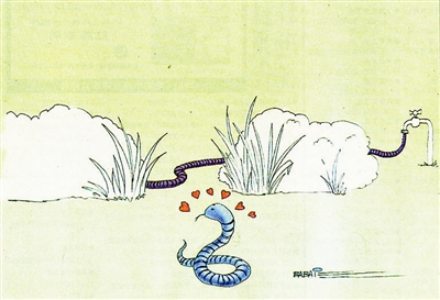 小蛇一眼就看上了伟岸的“郎君”频频示爱之际,发现自己看走了眼。它在惊骇中告诫年轻的朋友:做任何事都不要头脑发热哟!波罗兹(秘鲁)
