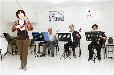6月14日,在日照供电公司离退休活动中心,京剧票友会成员正在二胡爱好者伴奏下唱着京剧《龙凤呈祥》。京剧票友会成立于2012年6月,短短一年时间内成员发展为20余人,他们极大带动了公司退休职工参加文体活动的积极性。退休职工舞蹈队、棋友会等组织相继成立。 (董健)