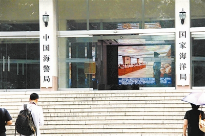 7月22日,位于北京复兴门外大街的国家海洋局门口,重组后的国家海洋局正式挂牌。同时,已悬挂14年的“中国海监总队”牌匾被取下,换上了“中国海警局”牌匾。