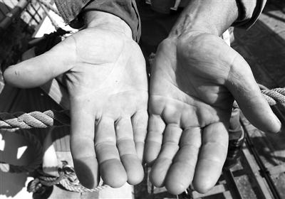 29岁的陈多根是上海的一名外墙清洁工,他来自安徽,为了生计来到这个城市。最近,上海持续高温,陈多根和他的同事们顶着烈日工作。为了工作时能够凉快一些,他们往往清晨四点就上班。陈多根说,虽然辛苦,但这个行业的工作时间比工厂还是要短一些,收入也相对高一些。谈起自己的“战绩”,他颇有些自豪:“我擦过最高的楼是上海环球金融中心呢!”