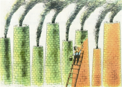 企业污染环境面临巨额罚款,厂长开动脑筋,想出粉饰厂房的“高招”。看来这种瞒天过海的伎俩并非只是国人专利。