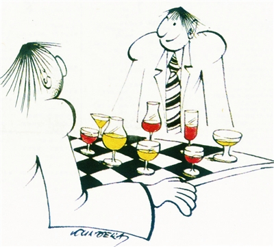酒与棋本不是一码事,可是漫画构思让二者有了巧妙结合,画面上出现了质的突变,产生“棋逢对手,酌遇酒友”的喜剧效果。马维尔(捷克)