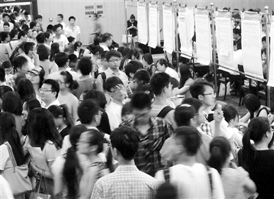 7月28日,古城苏州热浪滚滚,在苏州市人才市场举办的夏季人才招聘会上,大批求职者冒着酷暑前来咨询应聘。据悉,当天185家单位提供4500多个工作岗位,其中实用性人才广受欢迎,80%以上的岗位只要求大专及以下学历。 王建康 摄