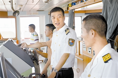 宣晓东在意自己上船后的每一个细节,交流的眼神和善,握手热烈,开关门轻柔,与遇到的每个水手、驾驶员热情打招呼……在矿船上,踩了矿灰,进驾驶台,在门垫上擦擦脚。他说,这样就可以营造出一个协调友好的气场。“在船上,他是绅士。”杨光对师父由衷地佩服。