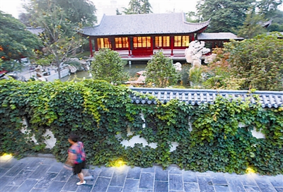 今年6月,紫荆山公园内建成并开放了一道新风景:一处名为“梦溪园”的苏式园林。该园林由政府投资建设,2亩左右的面积,里面溪水潺潺、鸟语花香,亭台楼阁别具一格,号称郑州“最美庭院”。