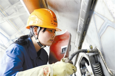 苦练加上天生的悟性,使得易冉很快在车间施焊量最大、工作条件最艰苦的底转班站稳了脚跟,她焊出的一条条焊缝均匀、熠亮,完全看不出是一个新手的“作品”。