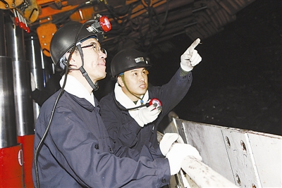平庄煤业总经理、党委副书记张志,党委书记、副总经理赵连陟在井下检查工作