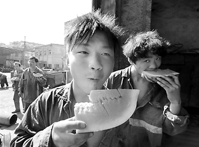 8月7日,重庆能源集团石壕煤矿运输队工会主席钱熙敏肩扛西瓜走进维修车间,为正在工作的100多名维修工送来清凉。