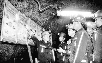 “5831安全管理模式很值得学习,煤矿安全管理重点在班组,要以班组安全保队安全,以队安全保矿井安全。”7月底,川煤集团广旺公司党委书记、董事长胡文在深入赵家坝煤矿井下1724掘进碛头时,路经三角墱处,突然看到这里悬挂着6幅班组建设安全屋牌板,他停下脚步饶有兴趣地读起来。之后,他对中国安全生产协会班组安全建设工作委员会编制的这套挂图展板颇为赞赏。该矿矿长母培安介绍道:“这是今年为全矿各基层队统一购置的班组建设安全屋画报,以此提醒井下矿工,随时随地要规范操作、注意安全。”