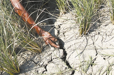 九江县港口街镇茶岭村的稻田旱情非常严重。