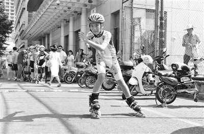 8月8日,浙江省杭州市,13岁的杭州少年彭衢杭在轮滑队小伙伴陪同下,开始了从杭州前往广州某足球学校的千里轮滑旅程。