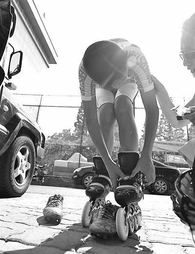 浙江省杭州市,彭衢杭在出发前进行滑行热身。