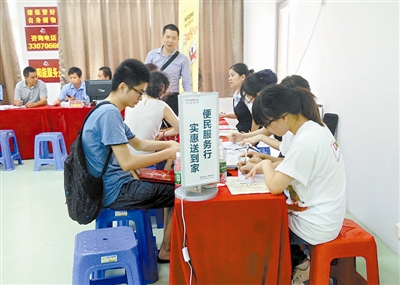 8月11日,选完房的申请人在现场办理有线电视等便民服务。当日,深圳规模最大的公租房项目龙悦居、梅山苑二期正式开始选房。申请人可实现当场选房、当场签约、当场领取钥匙。