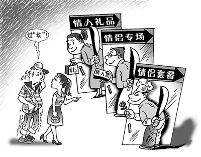 本来有着美好寓意的“中国情人节”,怎么就变成了泪水与钞票齐飞的苦日子?谁都明白,这不过是商家节日大战中的一次而已。如今,大大小小的节日,无一不成了电影院、餐厅、商场的狂欢盛宴,而人们却因为过节成本的上升而“望节生畏”。其实,节日气氛有时无须刻意营造,为准备节日里的高消费而提前节衣缩食不明智,过一次节直接“导致贫困”则更加划不来。在商家节日盛宴面前,消费者还须谨防被商家牵着鼻子走。