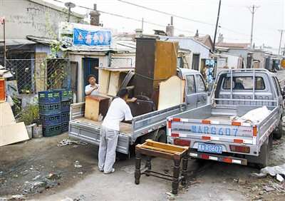 8月12日,哈尔滨市道外区北岗社区的棚户区内,居民老张正在收拾将家具装车,忙着搬家。老张说,当地是一处洼地,排水不畅,每次下大雨都要被淹,最严重的一次积水都没到腰部了;棚户区内环境非常差,垃圾乱倒,污水横流,胡同狭窄,着火时连消防车都开不进来;走访时看到,这里家家户户都在忙着收拾东西,准备搬迁;而棚户区内的一条主道上,积水至今也没有完全退去。 小刚 摄/CFP