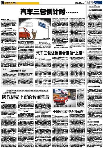 10月1日,汽车生产企业、经销商、媒体、各级质监部门将如何配合汽车三包顺利实施,汽车三包的执行力度究竟多大?不妨拭目以待。
