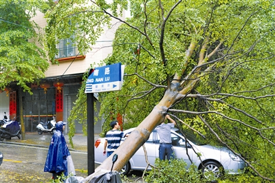 8月14日,广东阳江阳春市一棵大树被台风吹倒。