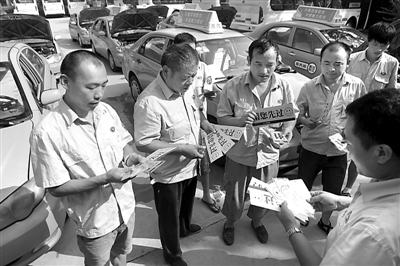 8月13日,西安雁翔路出租车服务部500名出租车司机领取了“请您先过”礼让牌。