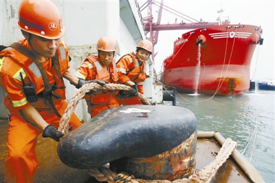 8月3日,在世界上最大的矿石码头——青岛港董家口港区,工人正在为一艘即将出发的货轮解缆。每天,进进出出的轮船承载着港口工人的海洋梦想,驶向世界各地,同时也在这里汇聚。