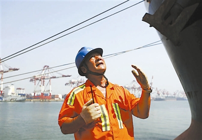 8月4日,青岛港集装箱码头湿热难耐,站在阳光底下,一会全身衣服就会湿透,但杜毅和自己的工友仍在紧张装货,不远处,他们的副队长皮进军也在现场指挥作业。“我们队长厉害,还是十八大代表,跟着他干心里有底。”