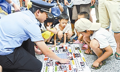 8月8日,杭州铁路公安处开展“浙江铁警暑期平安伴您平安出行”主题宣传活动。民警在杭州东站候车室内展示“乘车安全小跳棋”,提醒旅客注意乘车安全。楼煜 摄