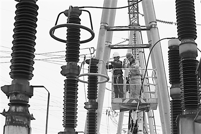 8月9日,在位于浙江瑞安的220千伏东新变电站里,室外地表温度超过55摄氏度,供电一线检修员工头顶烈日对运行异常的220千伏副母避雷器实施高压试验,进行数据采样分析,保障设备“零缺陷”投入运行,以最佳状态经受住前所未有的大“烤”。