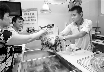 “货真价实的土猪肉,买40元送5元优惠券!”一名长相清秀的小伙子在上海一处农贸市场内的摊位上叫卖着。这位小伙子名叫海洋,今年26岁,来自北京,去年毕业于美国威斯康星州州立大学欧克莱尔分校。