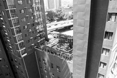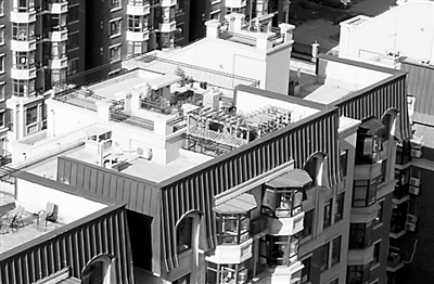 (下图)2013年8月17日,北京朝阳区朝阳区中海城三期香克林小区,仍有多户业主在楼顶加盖房屋,将户型改为复式。