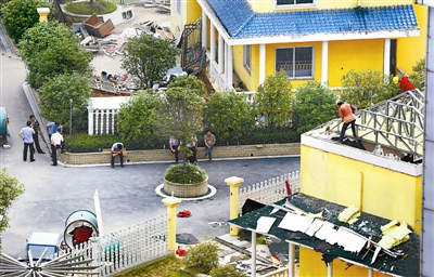 湖南衡阳:违建楼顶别墅开始强制拆除