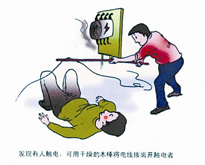 遇到此类事故时,救援者须立刻切断电源,保证触电者不再受电流伤害后,再下水施救。其中应注意的是,施救人也应当留意漏电的危险,比如手是否沾有水,在需借助工具断电或挑开电线时,最好用绝缘物品挑开或切断触电者身上的电线、灯、插座等带电物品,可以选择干燥绝缘的木质材料。
